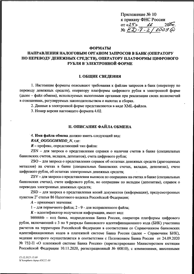 ПРИКАЗ ФНС РФ от 25.11.2025 N ЕД-7-2/1009@