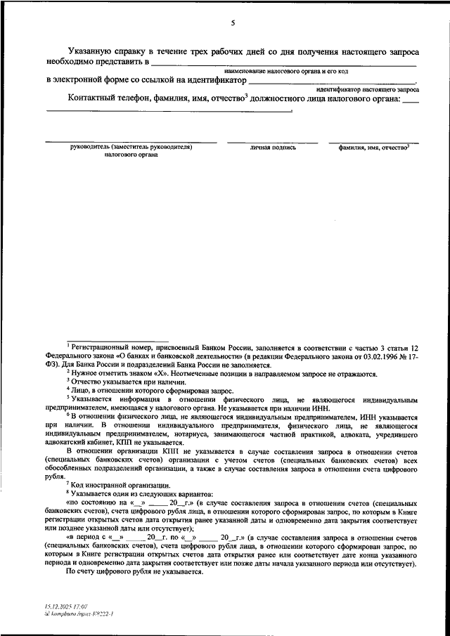 "ОБ УТВЕРЖДЕНИИ ФОРМ И ФОРМАТОВ НАПРАВЛЕНИЯ НАЛОГОВЫМ ОРГАНОМ ЗАПРОСОВ В БАНК (ОПЕРАТОРУ ПО ПЕРЕВОДУ ДЕНЕЖНЫХ СРЕДСТВ), ОПЕРАТОРУ ПЛАТФОРМЫ ЦИФРОВОГО РУБЛЯ В ЭЛЕКТРОННОЙ ФОРМЕ"
