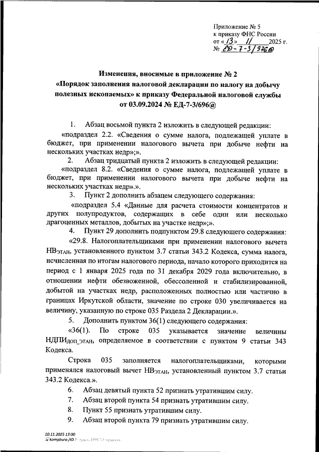 ПРИКАЗ ФНС РФ от 13.11.2025 N ЕД-7-3/976@