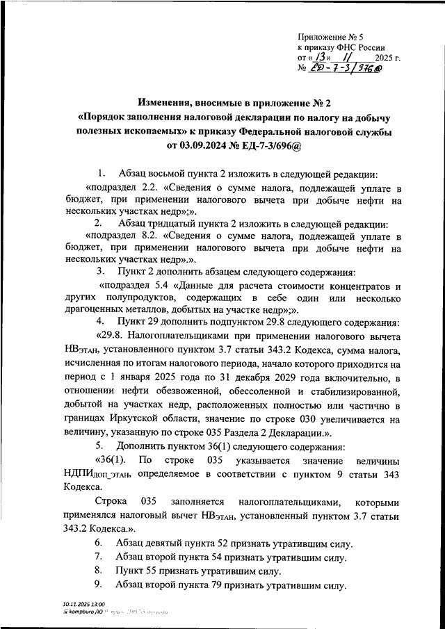 ПРИКАЗ ФНС РФ от 13.11.2025 N ЕД-7-3/976@