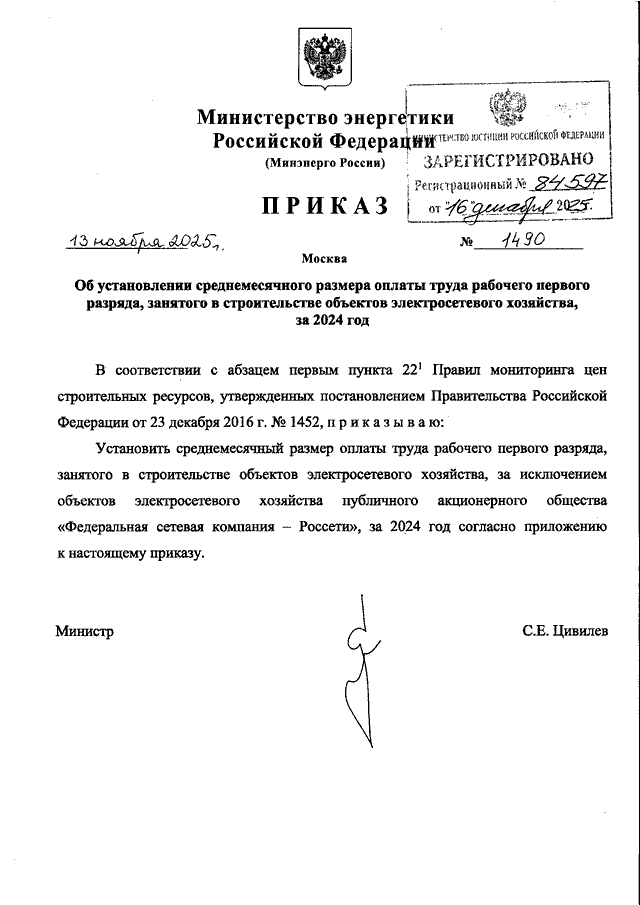 ПРИКАЗ Минэнерго РФ от 13.11.2025 N 1490