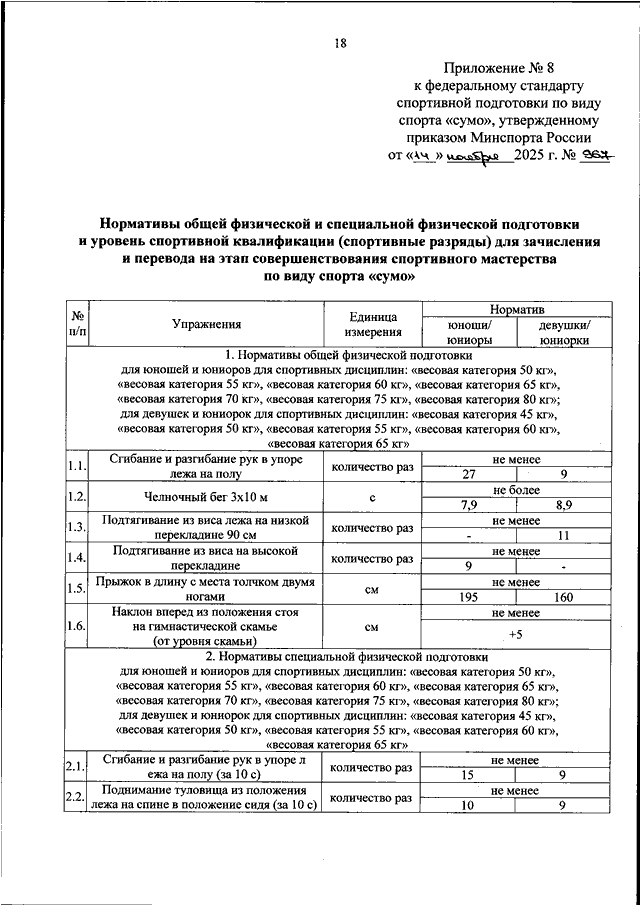 "ОБ УТВЕРЖДЕНИИ ФЕДЕРАЛЬНОГО СТАНДАРТА СПОРТИВНОЙ ПОДГОТОВКИ ПО ВИДУ СПОРТА "СУМО"