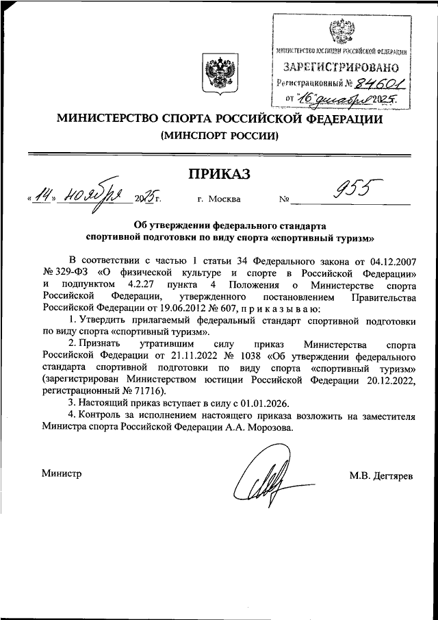 ПРИКАЗ Минспорта РФ от 14.11.2025 N 955