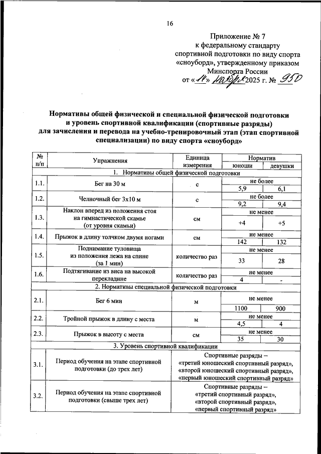ПРИКАЗ Минспорта РФ от 14.11.2025 N 950