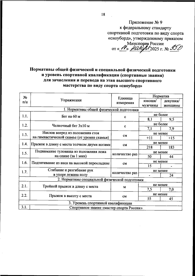 ПРИКАЗ Минспорта РФ от 14.11.2025 N 950