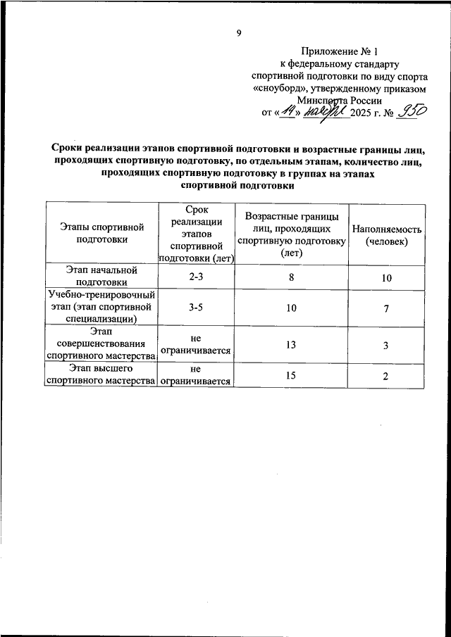 ПРИКАЗ Минспорта РФ от 14.11.2025 N 950
