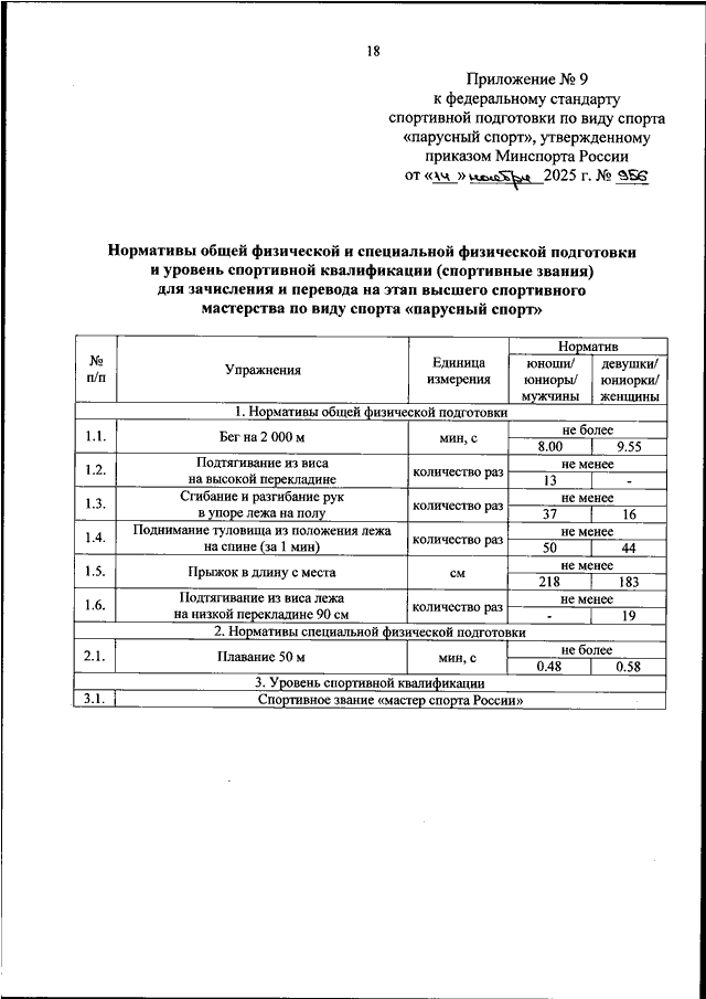 ПРИКАЗ Минспорта РФ от 14.11.2025 N 956