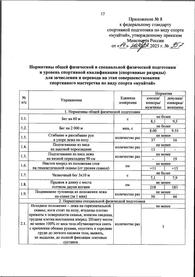 "ОБ УТВЕРЖДЕНИИ ФЕДЕРАЛЬНОГО СТАНДАРТА СПОРТИВНОЙ ПОДГОТОВКИ ПО ВИДУ СПОРТА "МУАЙТАЙ"