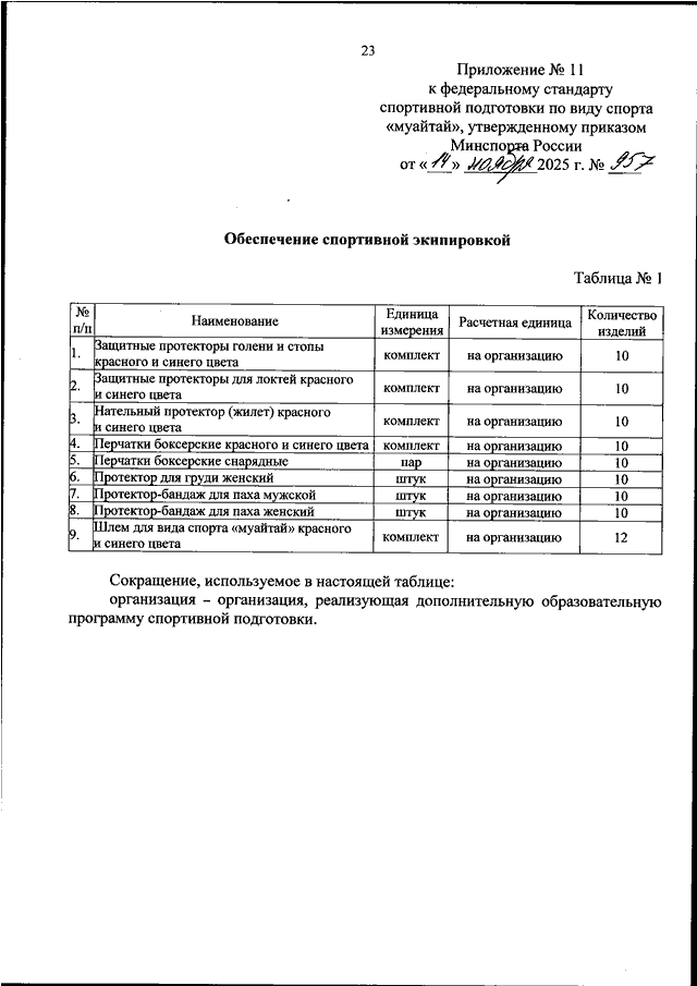 ПРИКАЗ Минспорта РФ от 14.11.2025 N 957