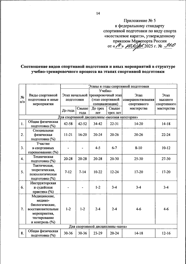 ПРИКАЗ Минспорта РФ от 14.11.2025 N 960