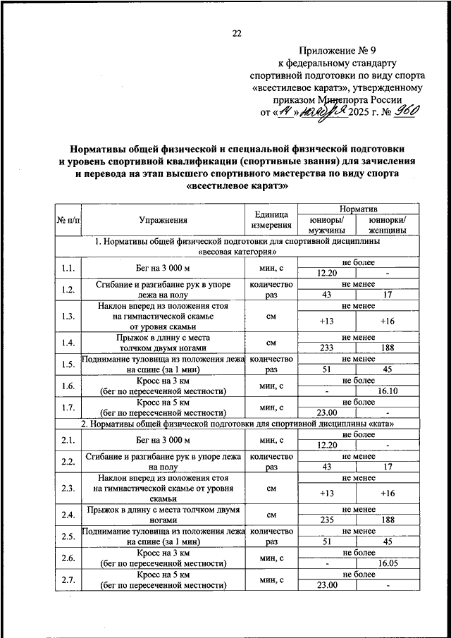 ПРИКАЗ Минспорта РФ от 14.11.2025 N 960