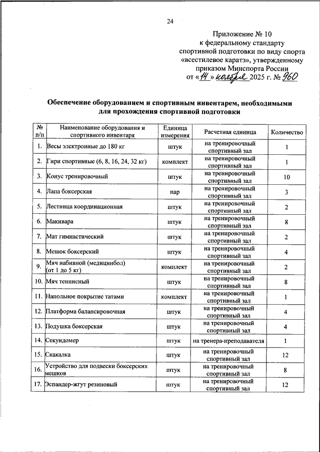 ПРИКАЗ Минспорта РФ от 14.11.2025 N 960