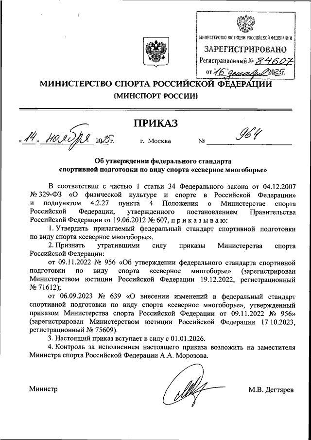 ПРИКАЗ Минспорта РФ от 14.11.2025 N 964