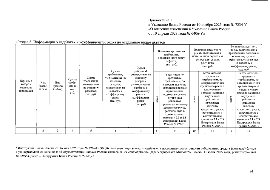УКАЗАНИЕ ЦБ РФ от 10.11.2025 N 7234-У