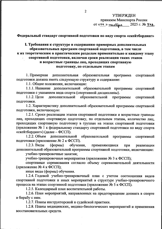 "ОБ УТВЕРЖДЕНИИ ФЕДЕРАЛЬНОГО СТАНДАРТА СПОРТИВНОЙ ПОДГОТОВКИ ПО ВИДУ СПОРТА "СКЕЙТБОРДИНГ"