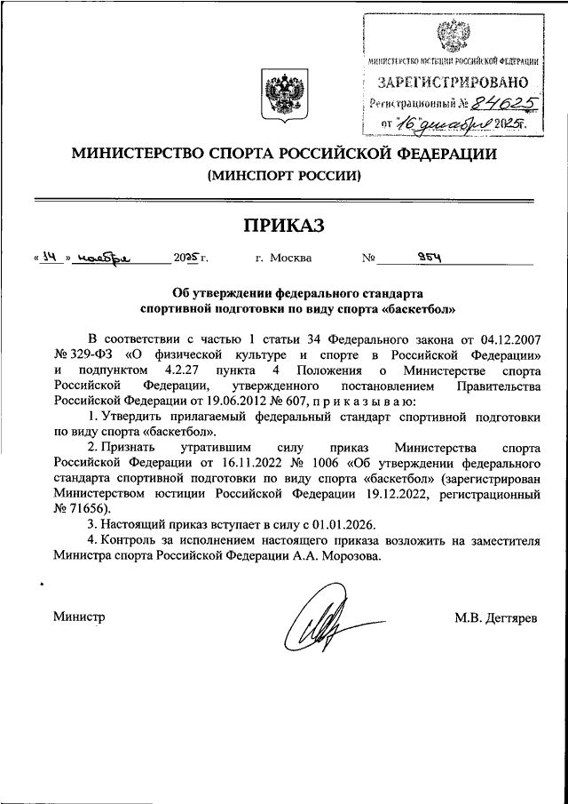 ПРИКАЗ Минспорта РФ от 14.11.2025 N 954