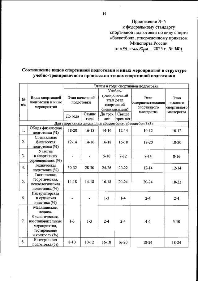 ПРИКАЗ Минспорта РФ от 14.11.2025 N 954