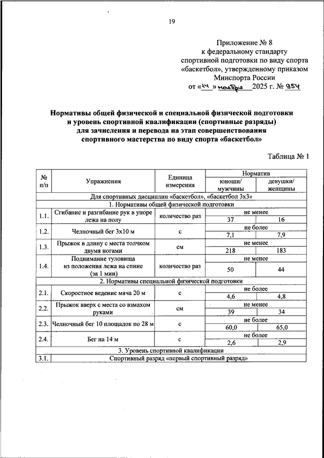 ПРИКАЗ Минспорта РФ от 14.11.2025 N 954