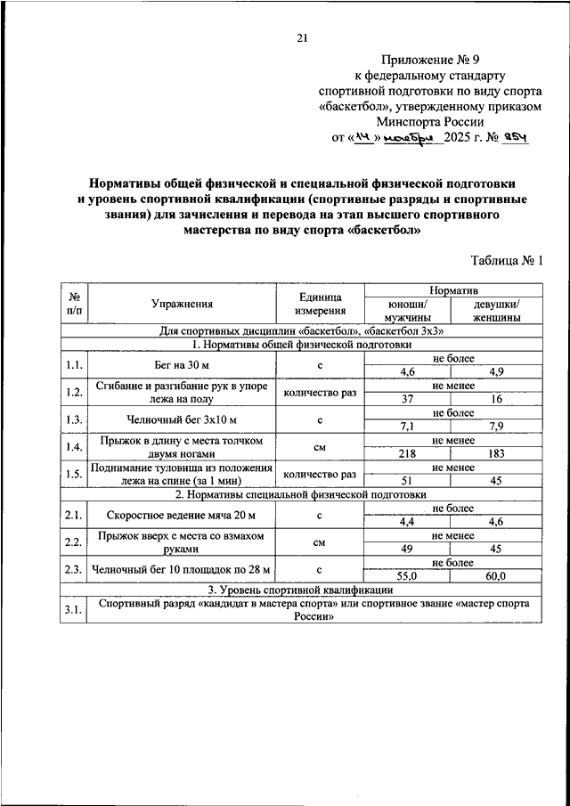 ПРИКАЗ Минспорта РФ от 14.11.2025 N 954