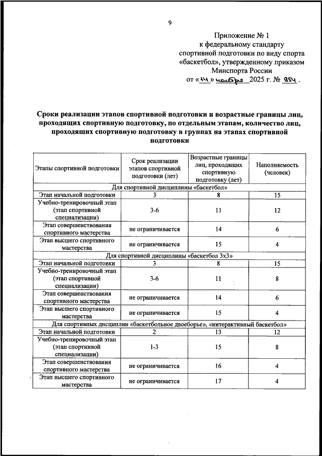 ПРИКАЗ Минспорта РФ от 14.11.2025 N 954