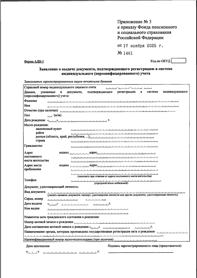 ПРИКАЗ СФР от 17.11.2025 N 1461