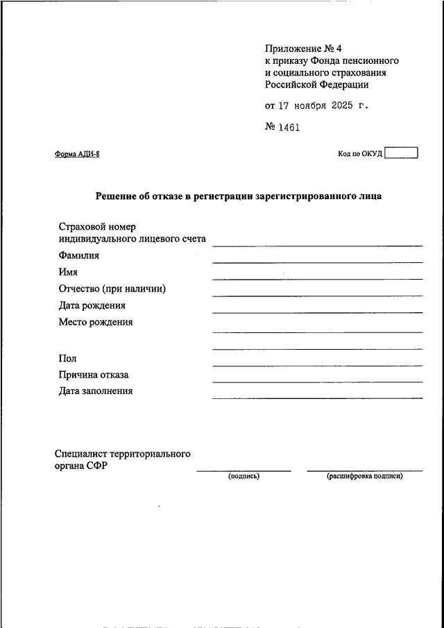 ПРИКАЗ СФР от 17.11.2025 N 1461