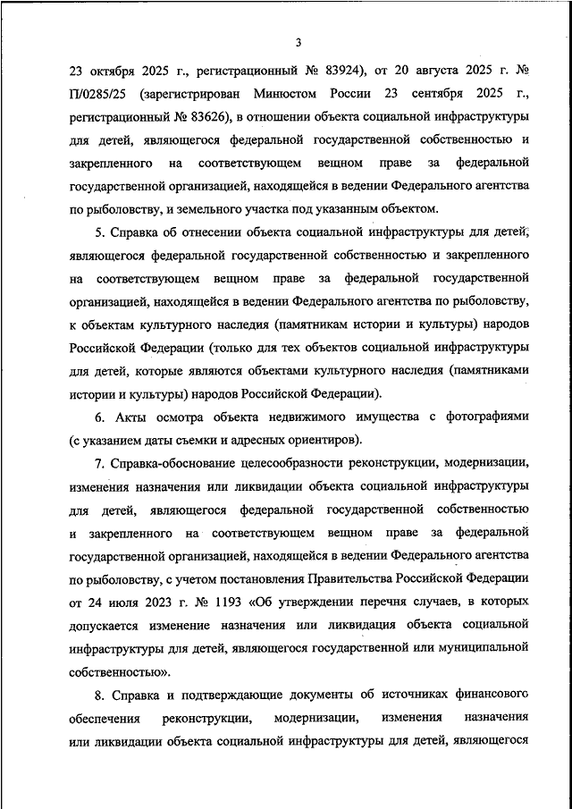 "О ПРОВЕДЕНИИ В ФЕДЕРАЛЬНОМ АГЕНТСТВЕ ПО РЫБОЛОВСТВУ ОЦЕНКИ ПОСЛЕДСТВИЙ ПРИНЯТИЯ РЕШЕНИЯ О РЕКОНСТРУКЦИИ, МОДЕРНИЗАЦИИ, ОБ ИЗМЕНЕНИИ НАЗНАЧЕНИЯ ИЛИ О ЛИКВИДАЦИИ ОБЪЕКТА СОЦИАЛЬНОЙ ИНФРАСТРУКТУРЫ ДЛЯ ДЕТЕЙ, ЯВЛЯЮЩЕГОСЯ ФЕДЕРАЛЬНОЙ ГОСУДАРСТВЕННОЙ СОБСТВЕННОСТЬЮ, ЗАКЛЮЧЕНИИ ФЕДЕРАЛЬНОЙ ГОСУДАРСТВЕННОЙ ОРГАНИЗАЦИЕЙ, ОБРАЗУЮЩЕЙ СОЦИАЛЬНУЮ ИНФРАСТРУКТУРУ ДЛЯ ДЕТЕЙ, ДОГОВОРА АРЕНДЫ, ДОГОВОРА БЕЗВОЗМЕЗДНОГО ПОЛЬЗОВАНИЯ ЗАКРЕПЛЕННЫХ ЗА НЕЙ ОБЪЕКТОВ СОБСТВЕННОСТИ, А ТАКЖЕ О РЕОРГАНИЗАЦИИ ИЛИ ЛИКВИДАЦИИ ФЕДЕРАЛЬНЫХ ГОСУДАРСТВЕННЫХ ОРГАНИЗАЦИЙ, ОБРАЗУЮЩИХ СОЦИАЛЬНУЮ ИНФРАСТРУКТУРУ ДЛЯ ДЕТЕЙ, ЗА ИСКЛЮЧЕНИЕМ ФЕДЕРАЛЬНОЙ ГОСУДАРСТВЕННОЙ ОБРАЗОВАТЕЛЬНОЙ ОРГАНИЗАЦИИ"