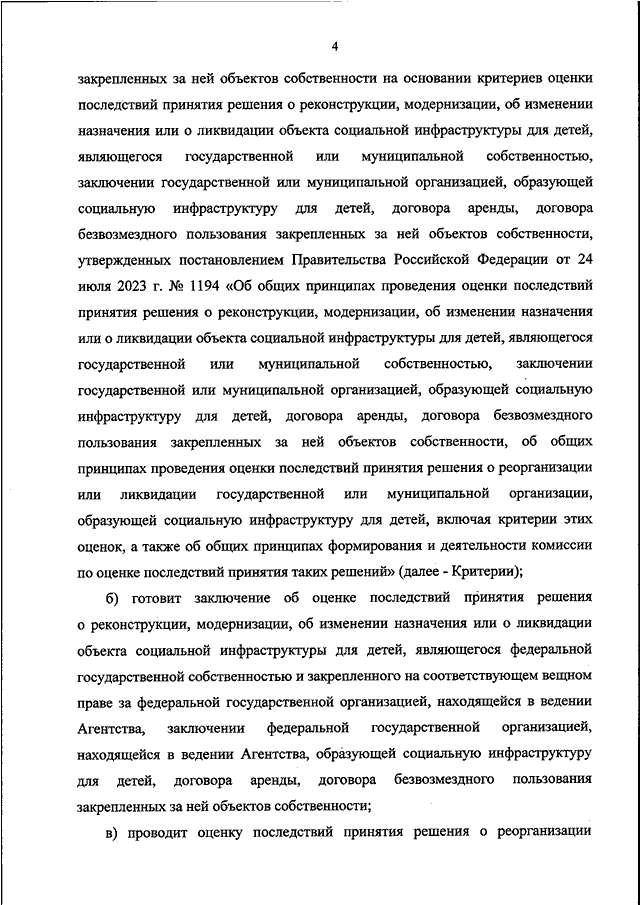 "О ПРОВЕДЕНИИ В ФЕДЕРАЛЬНОМ АГЕНТСТВЕ ПО РЫБОЛОВСТВУ ОЦЕНКИ ПОСЛЕДСТВИЙ ПРИНЯТИЯ РЕШЕНИЯ О РЕКОНСТРУКЦИИ, МОДЕРНИЗАЦИИ, ОБ ИЗМЕНЕНИИ НАЗНАЧЕНИЯ ИЛИ О ЛИКВИДАЦИИ ОБЪЕКТА СОЦИАЛЬНОЙ ИНФРАСТРУКТУРЫ ДЛЯ ДЕТЕЙ, ЯВЛЯЮЩЕГОСЯ ФЕДЕРАЛЬНОЙ ГОСУДАРСТВЕННОЙ СОБСТВЕННОСТЬЮ, ЗАКЛЮЧЕНИИ ФЕДЕРАЛЬНОЙ ГОСУДАРСТВЕННОЙ ОРГАНИЗАЦИЕЙ, ОБРАЗУЮЩЕЙ СОЦИАЛЬНУЮ ИНФРАСТРУКТУРУ ДЛЯ ДЕТЕЙ, ДОГОВОРА АРЕНДЫ, ДОГОВОРА БЕЗВОЗМЕЗДНОГО ПОЛЬЗОВАНИЯ ЗАКРЕПЛЕННЫХ ЗА НЕЙ ОБЪЕКТОВ СОБСТВЕННОСТИ, А ТАКЖЕ О РЕОРГАНИЗАЦИИ ИЛИ ЛИКВИДАЦИИ ФЕДЕРАЛЬНЫХ ГОСУДАРСТВЕННЫХ ОРГАНИЗАЦИЙ, ОБРАЗУЮЩИХ СОЦИАЛЬНУЮ ИНФРАСТРУКТУРУ ДЛЯ ДЕТЕЙ, ЗА ИСКЛЮЧЕНИЕМ ФЕДЕРАЛЬНОЙ ГОСУДАРСТВЕННОЙ ОБРАЗОВАТЕЛЬНОЙ ОРГАНИЗАЦИИ"