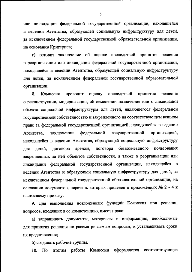 "О ПРОВЕДЕНИИ В ФЕДЕРАЛЬНОМ АГЕНТСТВЕ ПО РЫБОЛОВСТВУ ОЦЕНКИ ПОСЛЕДСТВИЙ ПРИНЯТИЯ РЕШЕНИЯ О РЕКОНСТРУКЦИИ, МОДЕРНИЗАЦИИ, ОБ ИЗМЕНЕНИИ НАЗНАЧЕНИЯ ИЛИ О ЛИКВИДАЦИИ ОБЪЕКТА СОЦИАЛЬНОЙ ИНФРАСТРУКТУРЫ ДЛЯ ДЕТЕЙ, ЯВЛЯЮЩЕГОСЯ ФЕДЕРАЛЬНОЙ ГОСУДАРСТВЕННОЙ СОБСТВЕННОСТЬЮ, ЗАКЛЮЧЕНИИ ФЕДЕРАЛЬНОЙ ГОСУДАРСТВЕННОЙ ОРГАНИЗАЦИЕЙ, ОБРАЗУЮЩЕЙ СОЦИАЛЬНУЮ ИНФРАСТРУКТУРУ ДЛЯ ДЕТЕЙ, ДОГОВОРА АРЕНДЫ, ДОГОВОРА БЕЗВОЗМЕЗДНОГО ПОЛЬЗОВАНИЯ ЗАКРЕПЛЕННЫХ ЗА НЕЙ ОБЪЕКТОВ СОБСТВЕННОСТИ, А ТАКЖЕ О РЕОРГАНИЗАЦИИ ИЛИ ЛИКВИДАЦИИ ФЕДЕРАЛЬНЫХ ГОСУДАРСТВЕННЫХ ОРГАНИЗАЦИЙ, ОБРАЗУЮЩИХ СОЦИАЛЬНУЮ ИНФРАСТРУКТУРУ ДЛЯ ДЕТЕЙ, ЗА ИСКЛЮЧЕНИЕМ ФЕДЕРАЛЬНОЙ ГОСУДАРСТВЕННОЙ ОБРАЗОВАТЕЛЬНОЙ ОРГАНИЗАЦИИ"