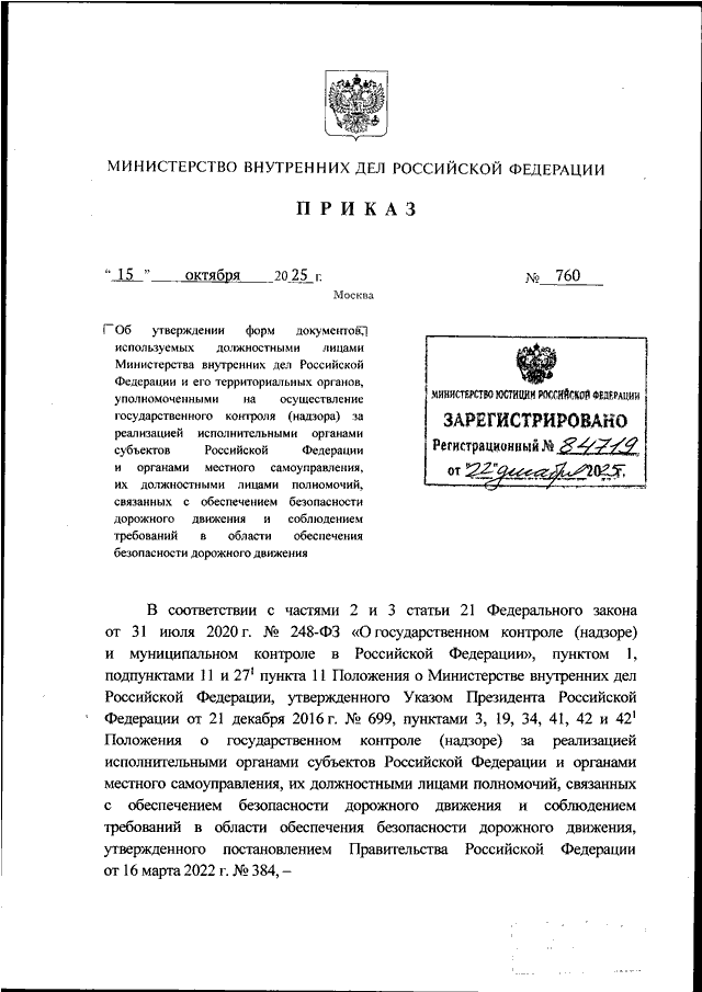 ПРИКАЗ МВД РФ от 15.10.2025 N 760