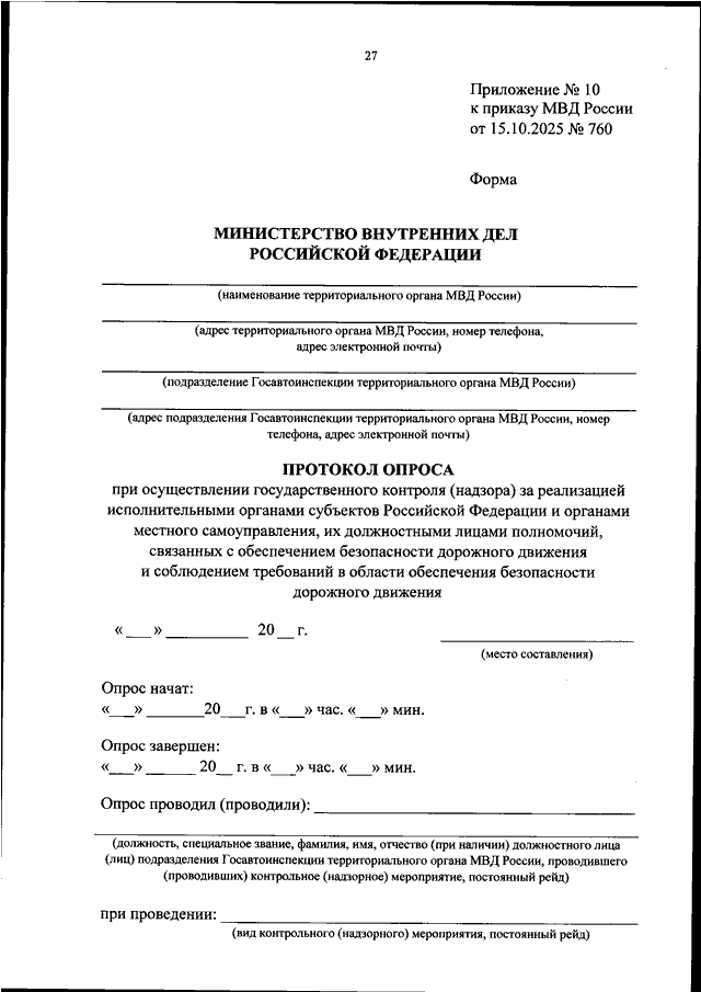ПРИКАЗ МВД РФ от 15.10.2025 N 760