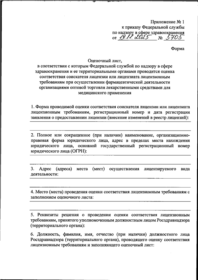 "ОБ УТВЕРЖДЕНИИ ФОРМ ОЦЕНОЧНЫХ ЛИСТОВ, В СООТВЕТСТВИИ С КОТОРЫМИ ФЕДЕРАЛЬНОЙ СЛУЖБОЙ ПО НАДЗОРУ В СФЕРЕ ЗДРАВООХРАНЕНИЯ И ЕЕ ТЕРРИТОРИАЛЬНЫМИ ОРГАНАМИ ПРОВОДИТСЯ ОЦЕНКА СООТВЕТСТВИЯ СОИСКАТЕЛЯ ЛИЦЕНЗИИ ИЛИ ЛИЦЕНЗИАТА ЛИЦЕНЗИОННЫМ ТРЕБОВАНИЯМ ПРИ ОСУЩЕСТВЛЕНИИ ФАРМАЦЕВТИЧЕСКОЙ ДЕЯТЕЛЬНОСТИ"