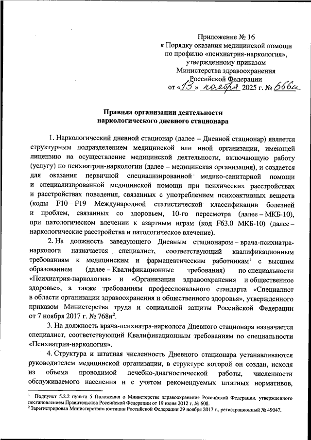 ПРИКАЗ Минздрава РФ от 13.11.2025 N 666н