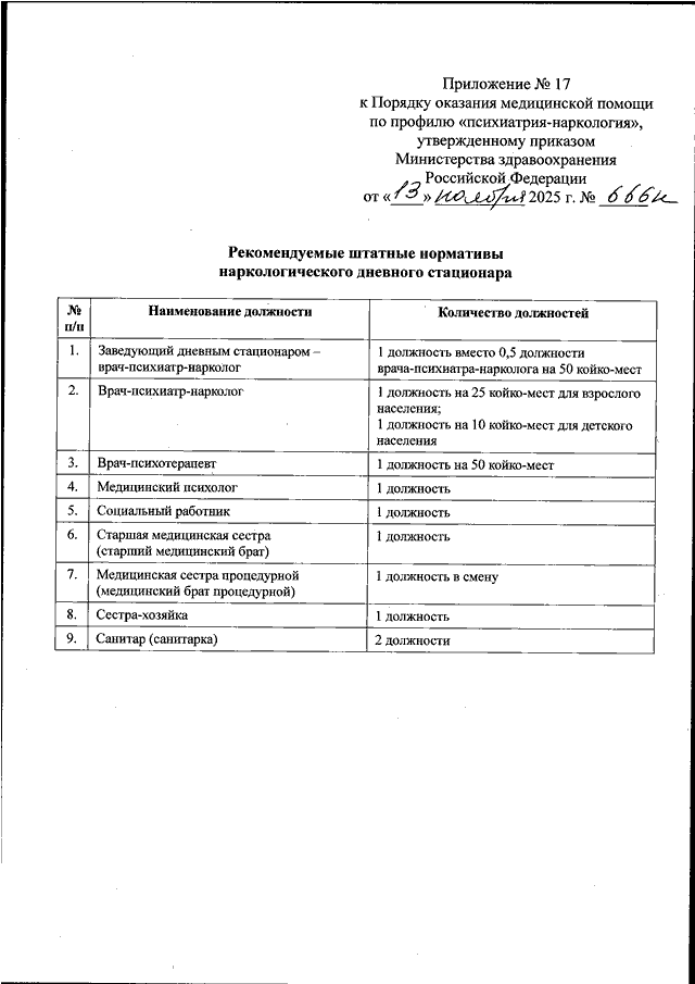 ПРИКАЗ Минздрава РФ от 13.11.2025 N 666н