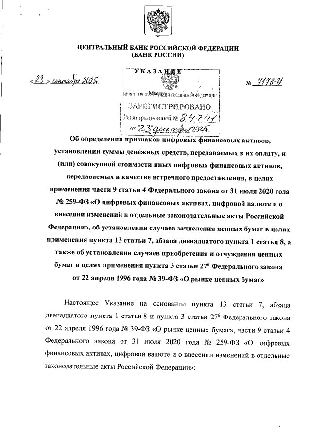 УКАЗАНИЕ ЦБ РФ от 23.09.2025 N 7176-У