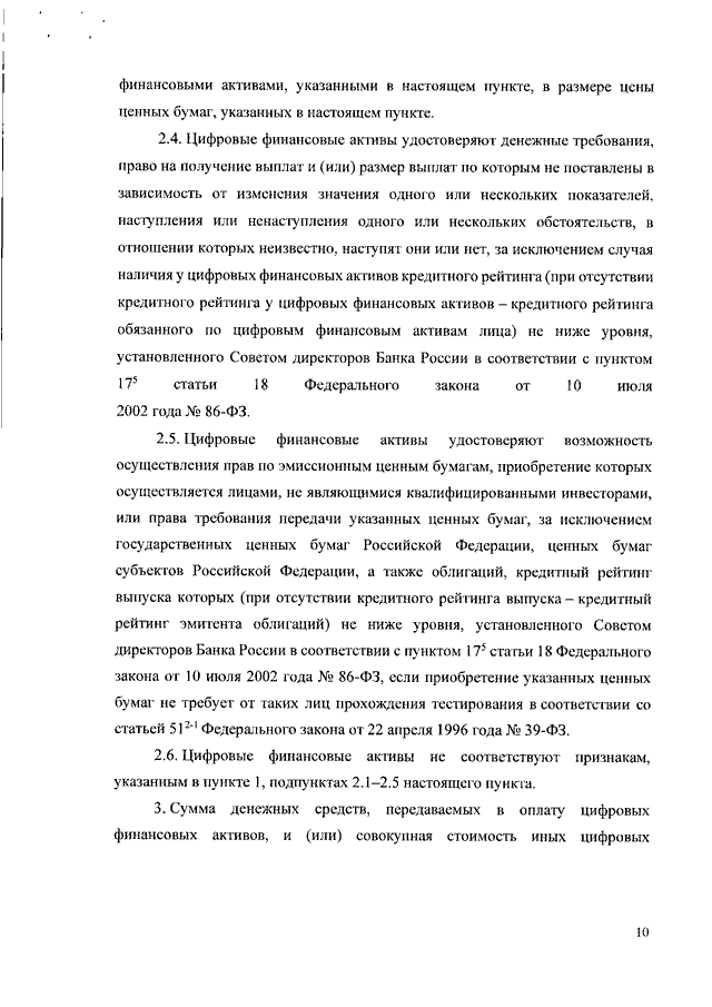 "ОБ ОПРЕДЕЛЕНИИ ПРИЗНАКОВ ЦИФРОВЫХ ФИНАНСОВЫХ АКТИВОВ, УСТАНОВЛЕНИИ СУММЫ ДЕНЕЖНЫХ СРЕДСТВ, ПЕРЕДАВАЕМЫХ В ИХ ОПЛАТУ, И (ИЛИ) СОВОКУПНОЙ СТОИМОСТИ ИНЫХ ЦИФРОВЫХ ФИНАНСОВЫХ АКТИВОВ, ПЕРЕДАВАЕМЫХ В КАЧЕСТВЕ ВСТРЕЧНОГО ПРЕДОСТАВЛЕНИЯ, В ЦЕЛЯХ ПРИМЕНЕНИЯ ЧАСТИ 9 СТАТЬИ 4 ФЕДЕРАЛЬНОГО ЗАКОНА ОТ 31 ИЮЛЯ 2020 Г. N 259-ФЗ "О ЦИФРОВЫХ ФИНАНСОВЫХ АКТИВАХ, ЦИФРОВОЙ ВАЛЮТЕ И О ВНЕСЕНИИ ИЗМЕНЕНИЙ В ОТДЕЛЬНЫЕ ЗАКОНОДАТЕЛЬНЫЕ АКТЫ РОССИЙСКОЙ ФЕДЕРАЦИИ", ОБ УСТАНОВЛЕНИИ СЛУЧАЕВ ЗАЧИСЛЕНИЯ ЦЕННЫХ БУМАГ В ЦЕЛЯХ ПРИМЕНЕНИЯ ПУНКТА 13 СТАТЬИ 7, АБЗАЦА ДВЕНАДЦАТОГО ПУНКТА 1 СТАТЬИ 8, А ТАКЖЕ ОБ УСТАНОВЛЕНИИ СЛУЧАЕВ ПРИОБРЕТЕНИЯ И ОТЧУЖДЕНИЯ ЦЕННЫХ БУМАГ В ЦЕЛЯХ ПРИМЕНЕНИЯ ПУНКТА 3 СТАТЬИ 27.6 ФЕДЕРАЛЬНОГО ЗАКОНА ОТ 22 АПРЕЛЯ 1996 Г. N 39-ФЗ "О РЫНКЕ ЦЕННЫХ БУМАГ"