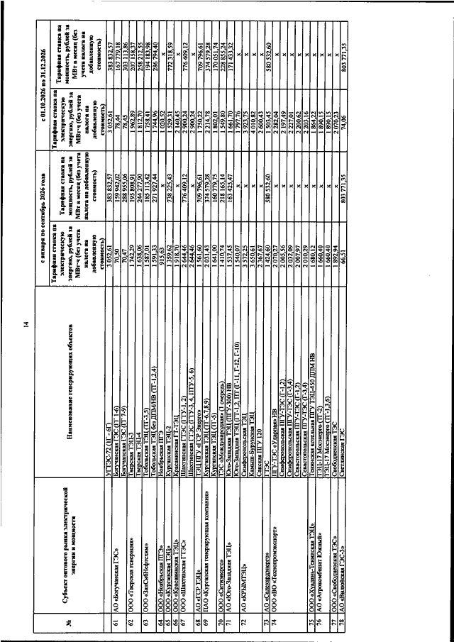 "ОБ УТВЕРЖДЕНИИ ЦЕН (ТАРИФОВ) НА ЭЛЕКТРИЧЕСКУЮ ЭНЕРГИЮ (МОЩНОСТЬ), ПОСТАВЛЯЕМУЮ В ЦЕНОВЫХ ЗОНАХ ОПТОВОГО РЫНКА СУБЪЕКТАМИ ОПТОВОГО РЫНКА - ПРОИЗВОДИТЕЛЯМИ ЭЛЕКТРИЧЕСКОЙ ЭНЕРГИИ (МОЩНОСТИ) ПО ДОГОВОРАМ, ЗАКЛЮЧЕННЫМ В СООТВЕТСТВИИ С ЗАКОНОДАТЕЛЬСТВОМ РОССИЙСКОЙ ФЕДЕРАЦИИ С ГАРАНТИРУЮЩИМИ ПОСТАВЩИКАМИ (ЭНЕРГОСНАБЖАЮЩИМИ ОРГАНИЗАЦИЯМИ, ЭНЕРГОСБЫТОВЫМИ ОРГАНИЗАЦИЯМИ, К ЧИСЛУ ПОКУПАТЕЛЕЙ ЭЛЕКТРИЧЕСКОЙ ЭНЕРГИИ (МОЩНОСТИ) КОТОРЫХ ОТНОСЯТСЯ НАСЕЛЕНИЕ И (ИЛИ) ПРИРАВНЕННЫЕ К НЕМУ КАТЕГОРИИ ПОТРЕБИТЕЛЕЙ), В ЦЕЛЯХ ОБЕСПЕЧЕНИЯ ПОТРЕБЛЕНИЯ ЭЛЕКТРИЧЕСКОЙ ЭНЕРГИИ НАСЕЛЕНИЕМ И (ИЛИ) ПРИРАВНЕННЫМИ К НЕМУ КАТЕГОРИЯМИ ПОТРЕБИТЕЛЕЙ, А ТАКЖЕ С ОПРЕДЕЛЕННЫМИ ПРАВИТЕЛЬСТВОМ РОССИЙСКОЙ ФЕДЕРАЦИИ СУБЪЕКТАМИ ОПТОВОГО РЫНКА - ПОКУПАТЕЛЯМИ ЭЛЕКТРИЧЕСКОЙ ЭНЕРГИИ (МОЩНОСТИ), ФУНКЦИОНИРУЮЩИМИ В ОТДЕЛЬНЫХ ЧАСТЯХ ЦЕНОВЫХ ЗОН ОПТОВОГО РЫНКА ИЛИ НА ОТДЕЛЬНЫХ ТЕРРИТОРИЯХ ЦЕНОВЫХ ЗОН ОПТОВОГО РЫНКА, РАНЕЕ ОТНОСИВШИХСЯ К НЕЦЕНОВЫМ ЗОНАМ ОПТОВОГО РЫНКА, ДЛЯ КОТОРЫХ ПРАВИТЕЛЬСТВОМ РОССИЙСКОЙ ФЕДЕРАЦИИ УСТАНОВЛЕНЫ ОСОБЕННОСТИ ФУНКЦИОНИРОВАНИЯ ОПТОВОГО И РОЗНИЧНЫХ РЫНКОВ, НА 2026 ГОД"