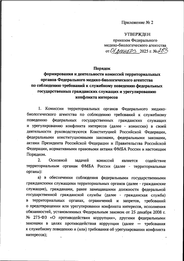 ПРИКАЗ ФМБА РФ от 01.12.2025 N 283