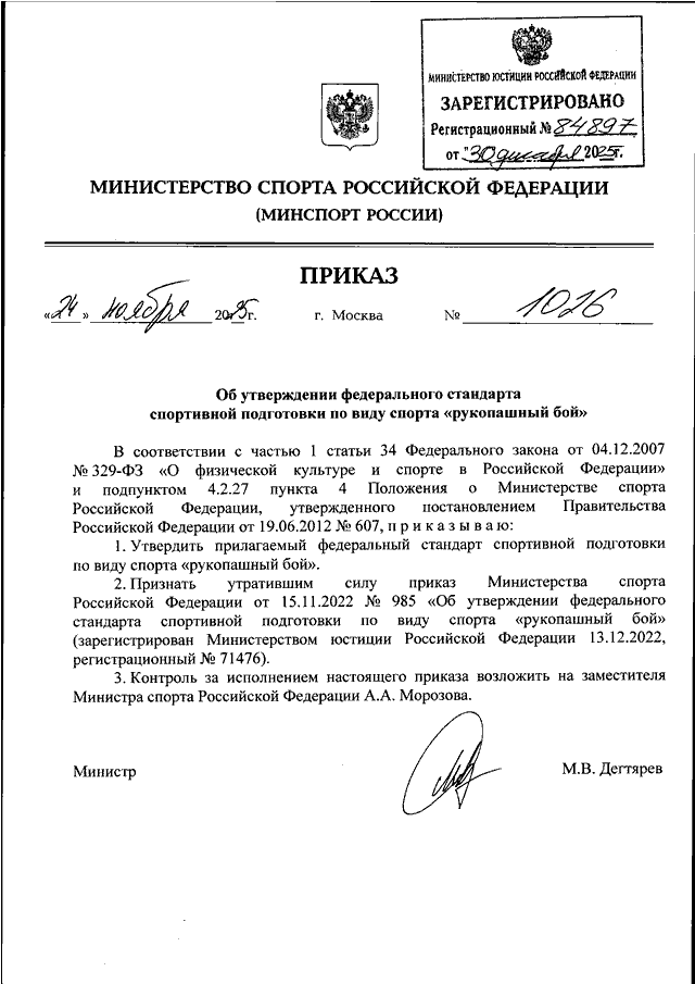 ПРИКАЗ Минспорта РФ от 24.11.2025 N 1026