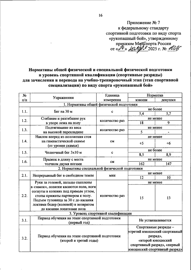 "ОБ УТВЕРЖДЕНИИ ФЕДЕРАЛЬНОГО СТАНДАРТА СПОРТИВНОЙ ПОДГОТОВКИ ПО ВИДУ СПОРТА "РУКОПАШНЫЙ БОЙ"