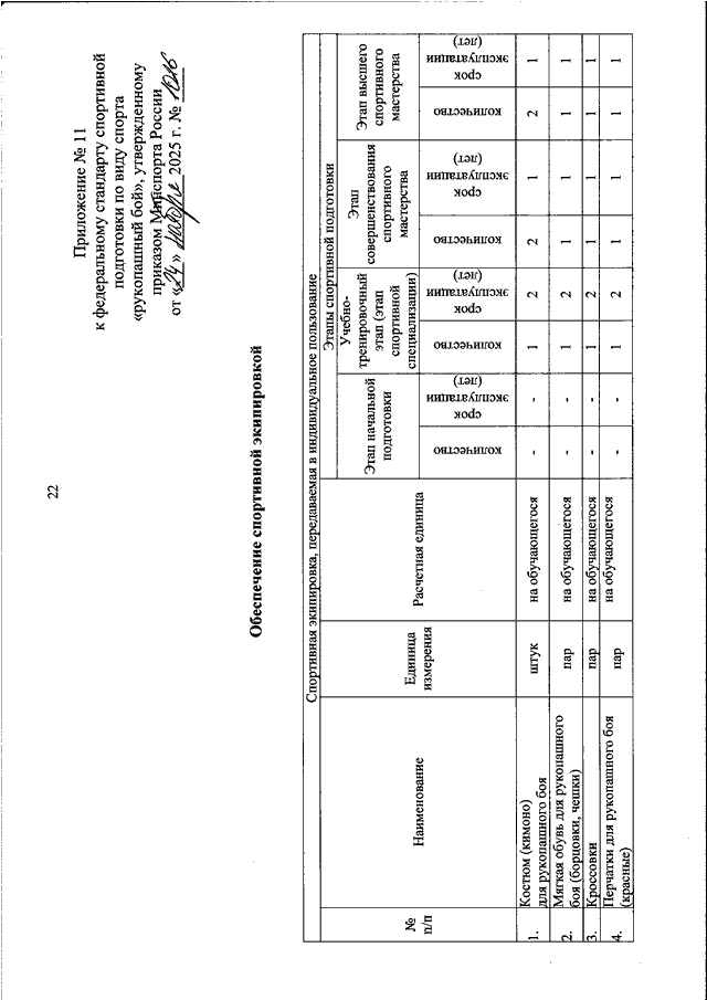 "ОБ УТВЕРЖДЕНИИ ФЕДЕРАЛЬНОГО СТАНДАРТА СПОРТИВНОЙ ПОДГОТОВКИ ПО ВИДУ СПОРТА "РУКОПАШНЫЙ БОЙ"
