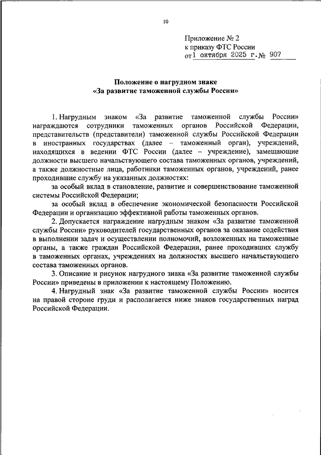 ПРИКАЗ ФТС РФ от 01.10.2025 N 907