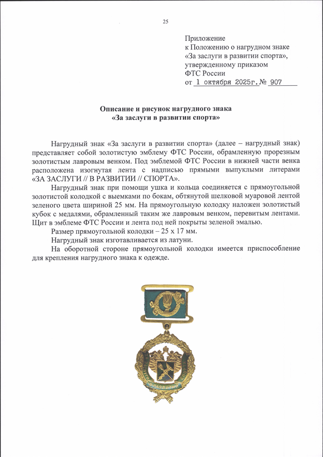 ПРИКАЗ ФТС РФ от 01.10.2025 N 907