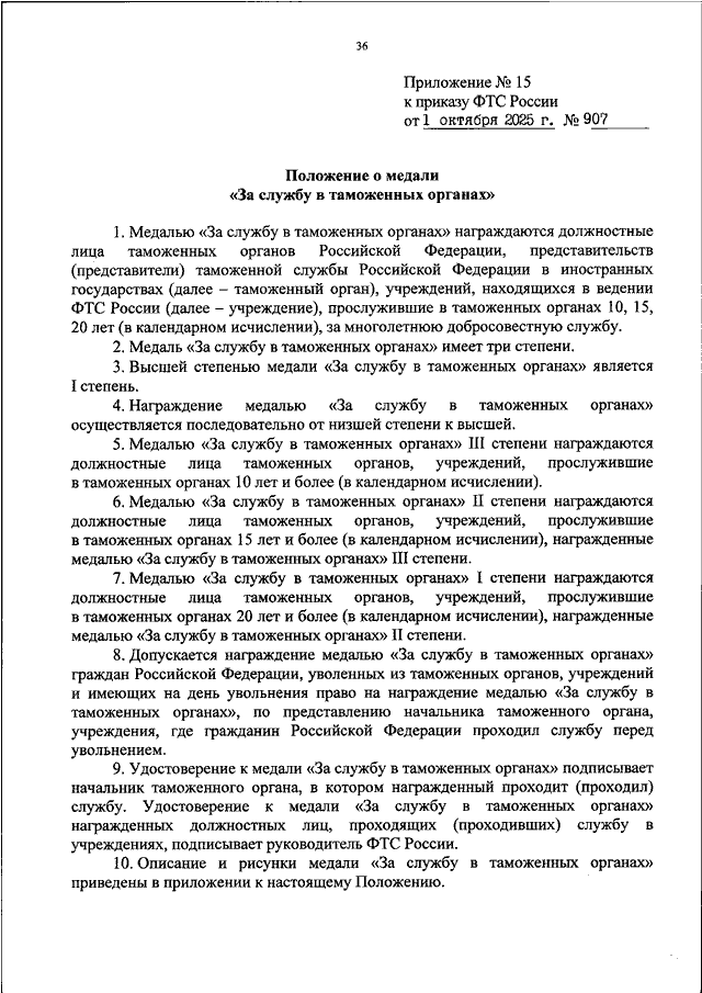 ПРИКАЗ ФТС РФ от 01.10.2025 N 907