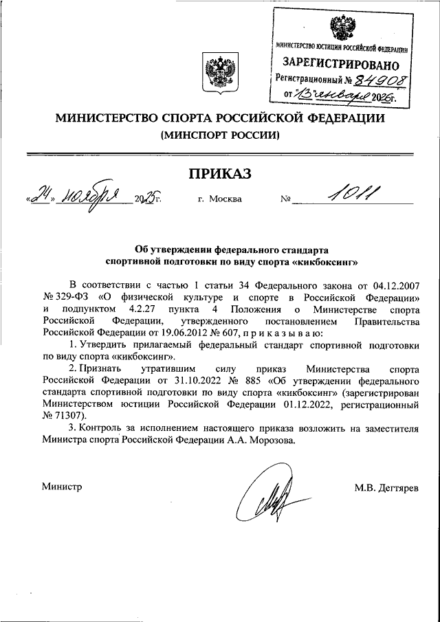 ПРИКАЗ Минспорта РФ от 24.11.2025 N 1011