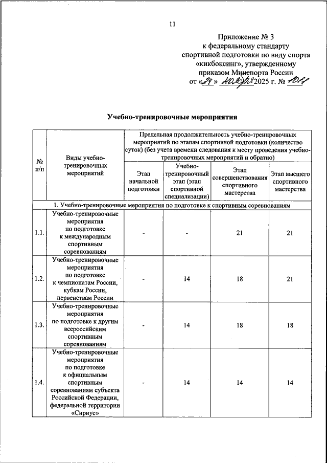 ПРИКАЗ Минспорта РФ от 24.11.2025 N 1011