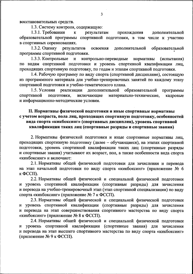 "ОБ УТВЕРЖДЕНИИ ФЕДЕРАЛЬНОГО СТАНДАРТА СПОРТИВНОЙ ПОДГОТОВКИ ПО ВИДУ СПОРТА "КИКБОКСИНГ"