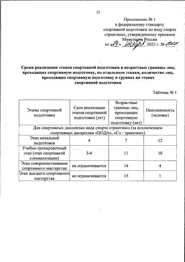 "ОБ УТВЕРЖДЕНИИ ФЕДЕРАЛЬНОГО СТАНДАРТА СПОРТИВНОЙ ПОДГОТОВКИ ПО ВИДУ СПОРТА "ТРИАТЛОН"
