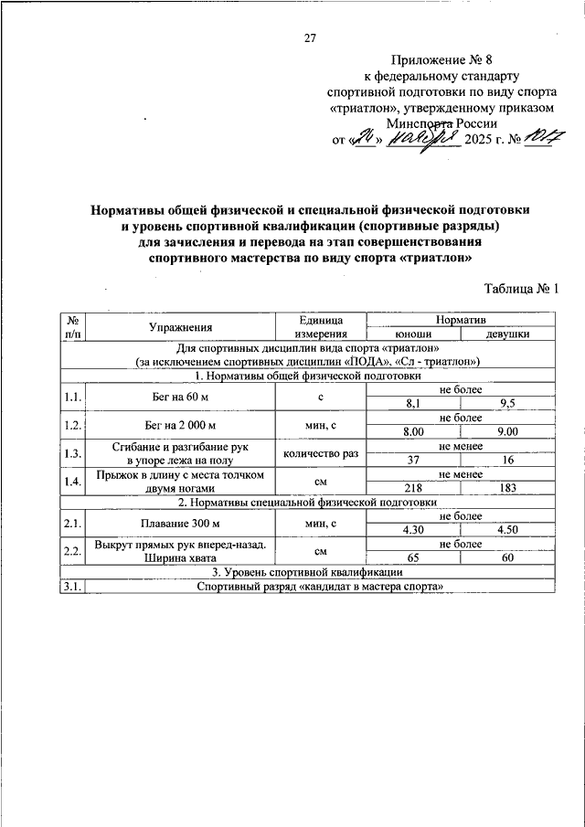 "ОБ УТВЕРЖДЕНИИ ФЕДЕРАЛЬНОГО СТАНДАРТА СПОРТИВНОЙ ПОДГОТОВКИ ПО ВИДУ СПОРТА "ТРИАТЛОН"