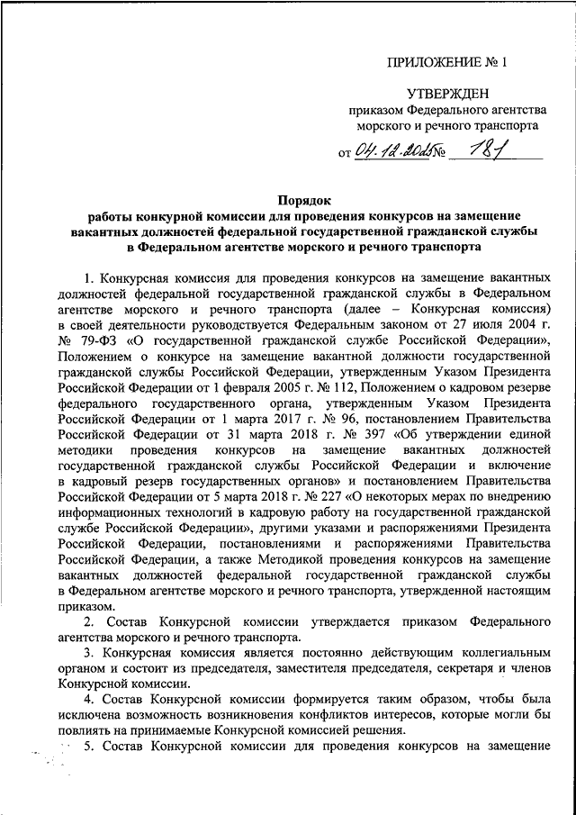 "ОБ УТВЕРЖДЕНИИ ПОРЯДКА РАБОТЫ КОНКУРСНОЙ КОМИССИИ ДЛЯ ПРОВЕДЕНИЯ КОНКУРСОВ НА ЗАМЕЩЕНИЕ ВАКАНТНЫХ ДОЛЖНОСТЕЙ ФЕДЕРАЛЬНОЙ ГОСУДАРСТВЕННОЙ ГРАЖДАНСКОЙ СЛУЖБЫ В ФЕДЕРАЛЬНОМ АГЕНТСТВЕ МОРСКОГО И РЕЧНОГО ТРАНСПОРТА И МЕТОДИКИ ПРОВЕДЕНИЯ КОНКУРСОВ НА ЗАМЕЩЕНИЕ ВАКАНТНЫХ ДОЛЖНОСТЕЙ ФЕДЕРАЛЬНОЙ ГОСУДАРСТВЕННОЙ ГРАЖДАНСКОЙ СЛУЖБЫ В ФЕДЕРАЛЬНОМ АГЕНТСТВЕ МОРСКОГО И РЕЧНОГО ТРАНСПОРТА"